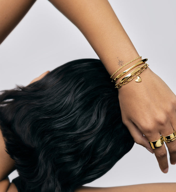 Thoughtfully designed with eco-conscious 14K gold, our pieces are made to be worn all day—at the gym, in the shower, and even while you sleep.